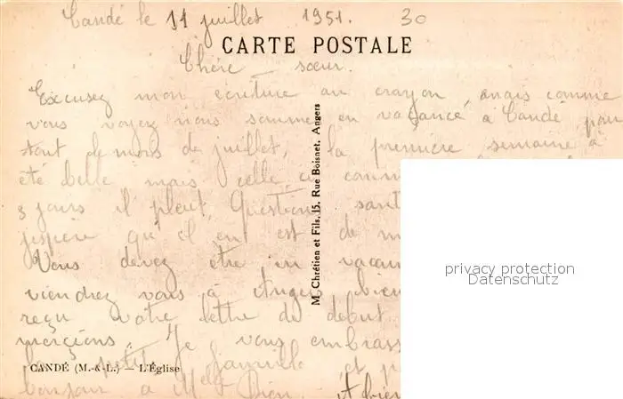 Cande Eglise Cande postalisch nicht gelaufen 1951 Erhaltung siehe scans [FriedD77] Frierer