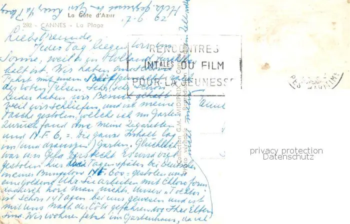 Cannes_06 La Plage postalisch gelaufen 1962 Erhaltung siehe scans [WerneD78] WernPID7