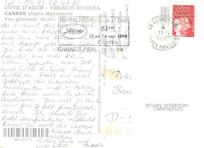 Cannes_06 Teilansicht m. Hafen postalisch gelaufen 1998 Erhaltung siehe scans [LiesaD40] LiesID40