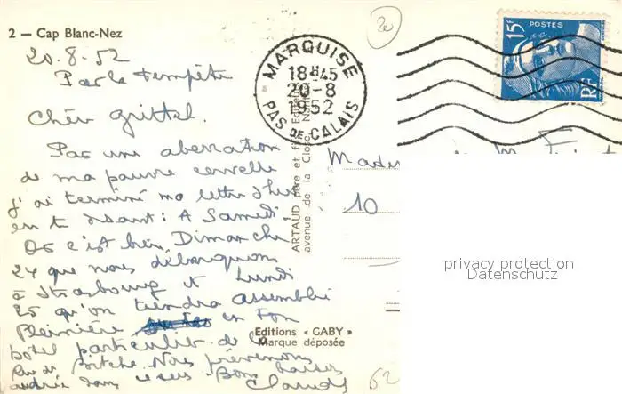 Cap_Blanc_Nez Steilkueste Cap_Blanc_Nez postalisch gelaufen 1952 Erhaltung siehe scans [FriedD77] Frierer