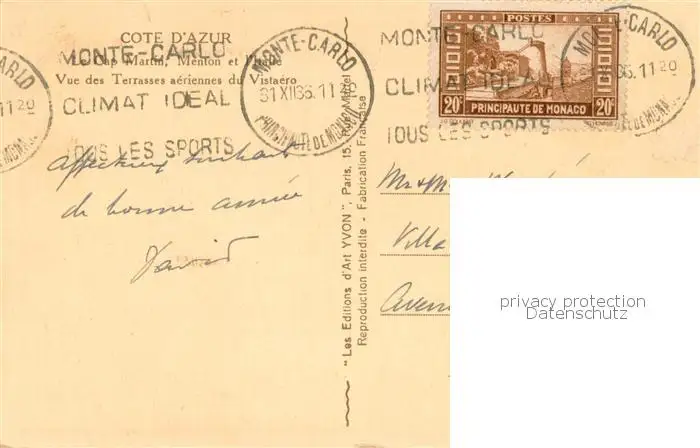 Cap_Martin_Capmartin_06 Vue des Terrasses aeriennes du Vistaero postalisch gelaufen 1936 Erhaltung siehe scans [WerneD78] WernPID7