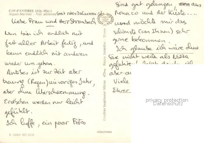 Cap_d_Antibes Aigues Marines vue aérienne Cap_d_Antibes postalisch nicht gelaufen nach 1965 Erhaltung siehe scans [FriedD77] Frierer
