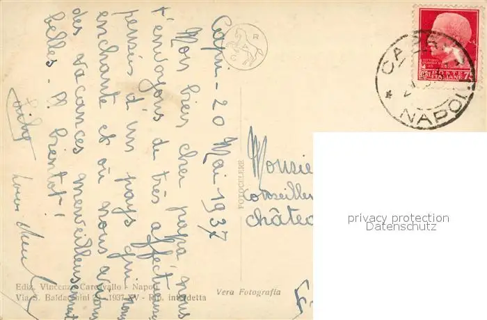 Capri Atrium della Villa di Tiberio Monte Solaro Capri postalisch gelaufen 1937 Erhaltung siehe scans [KathaD81] Kathoren