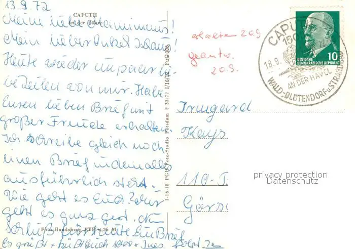 Caputh Gaststaette und Cafe Faehrhaus Faehre Caputh postalisch gelaufen 1972 Erhaltung siehe scans [FriedD77] Frierer