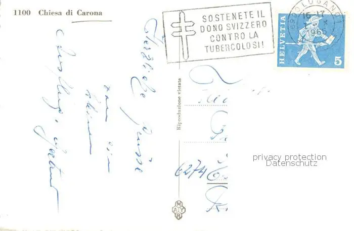 Carona_Lago_di_Lugano_TI Chiesa Kirche postalisch gelaufen 1965 Erhaltung siehe scans [FriedD77] Frierer
