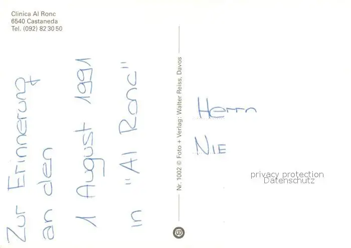 Castaneda Clinica Al Ronc Castaneda postalisch nicht gelaufen nach 1965 Erhaltung siehe scans [FriedD77] Frierer