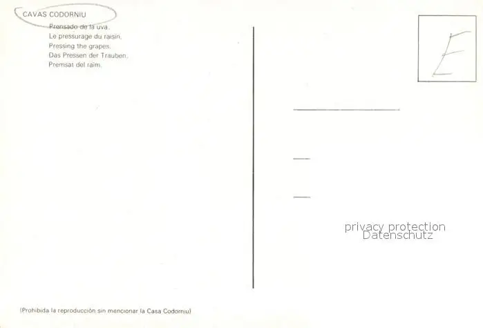 Cavas_Codorniu Prensado de la uva Cavas Codorniu postalisch nicht gelaufen nach 1965 Erhaltung siehe scans [FriedD77] Frierer