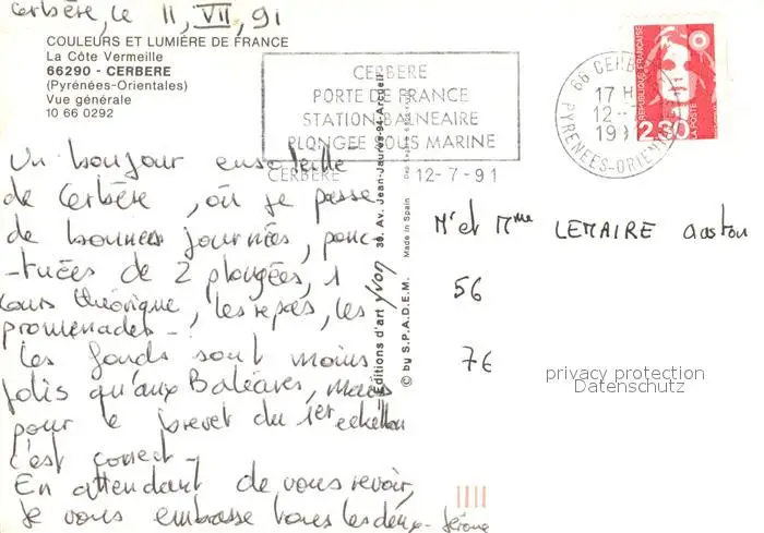 Cerbere Vue generale aerienne Cerbere postalisch gelaufen 1991 Erhaltung siehe scans [WerneD78] WernPID7