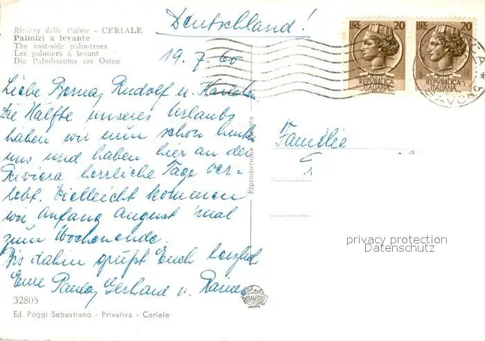 Ceriale Palmizi a levante Ceriale postalisch gelaufen 1960 Erhaltung siehe scans [WerneD78] WernPID7