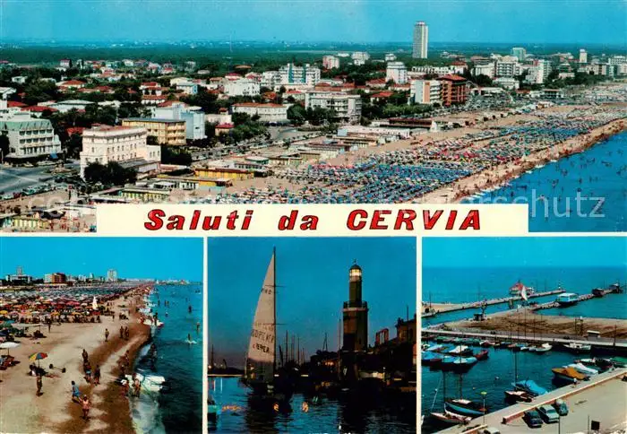 AK / Ansichtskarte Cervia Panorama Strand Hafenpartie Leuchtturm Cervia