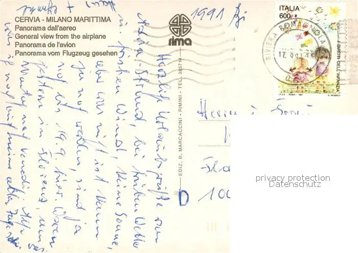 Cervia Panorama dall' aereo Cervia postalisch gelaufen 1991 Erhaltung siehe scans [FriedD77] Frierer