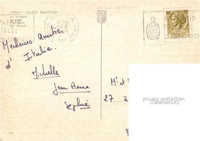 Cervia Strand Cervia postalisch gelaufen 1971 Erhaltung siehe scans [KathaD81] Kathoren