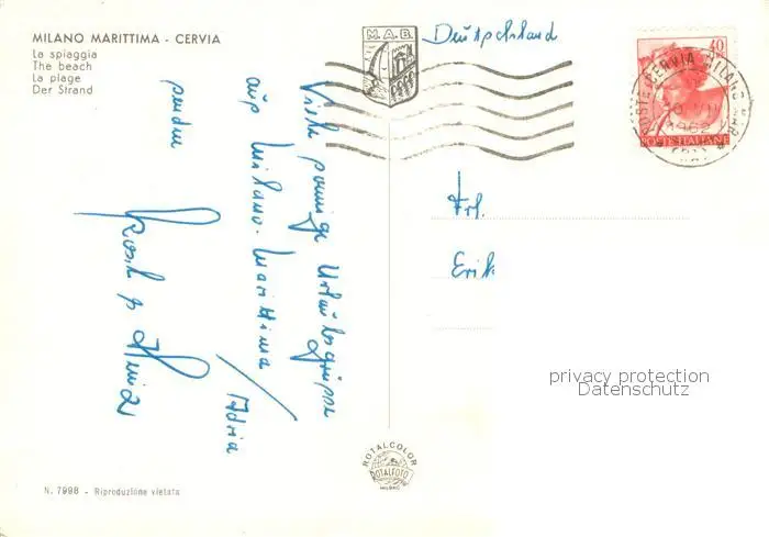 Cervia_IT Strandpartie postalisch gelaufen 1962 Erhaltung siehe scans [WerneD78] WernPID7
