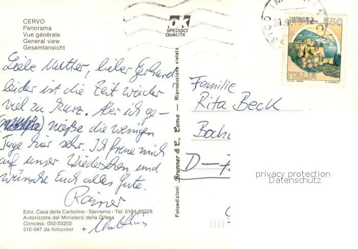 Cervo Fliegeraufnahme Cervo postalisch gelaufen nach 1965 Erhaltung siehe scans [WerneD78] WernPID7