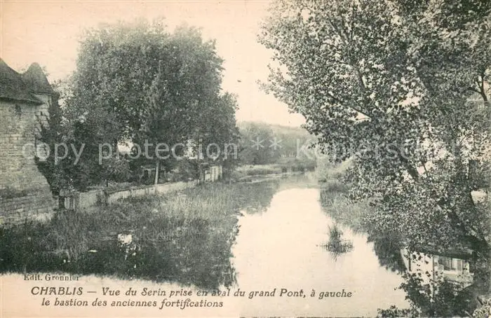 AK / Ansichtskarte Chablis Vue du Serin prise en aval du grand Pont a gauche le bastion des anciennes fortifications Chablis