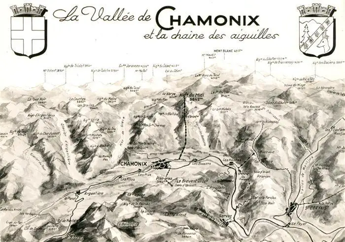 Chamonix La Vallee de Chamonix et la chaine des aiguilles Chamonix postalisch nicht gelaufen 1962 Erhaltung siehe scans [WerneD78] WernPID7