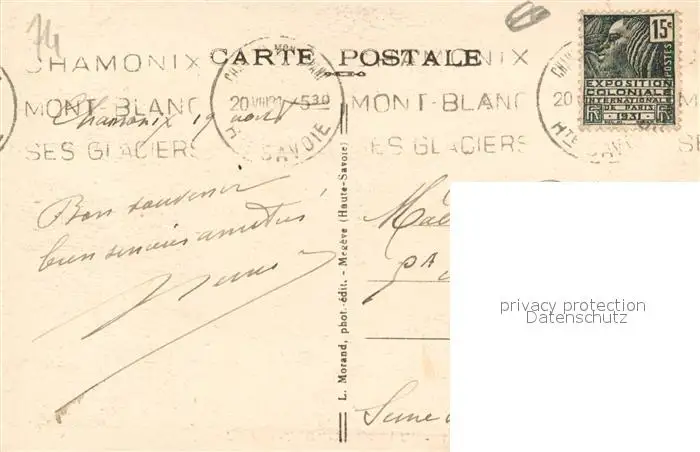 Chamonix Mont Blanc Chamonix postalisch gelaufen 1931 Erhaltung siehe scans [KathaD81] Kathoren