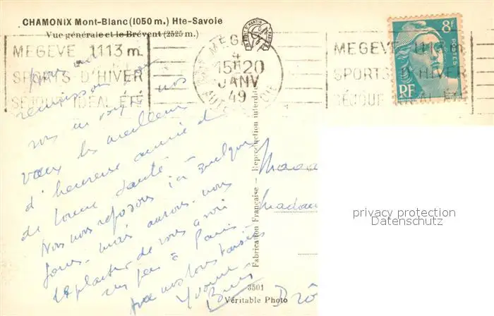 Chamonix Mont Blanc Chamonix postalisch gelaufen 1949 Erhaltung siehe scans [LiesaD40] LiesID40