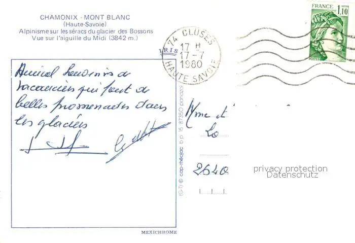 Chamonix Mont Blanc Chamonix postalisch gelaufen 1980 Erhaltung siehe scans [LiesaD40] LiesID40