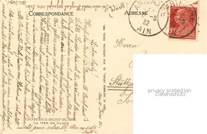 Chamonix Mont Blanc La Mer de Glace Chamonix postalisch gelaufen 1932 Erhaltung siehe scans [WerneD78] WernPID7