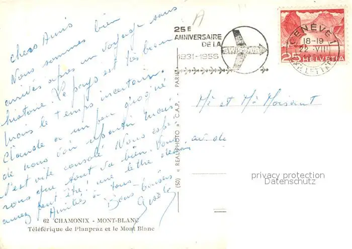 Chamonix Mont Blanc Seilbahn Chamonix postalisch gelaufen 1956 Erhaltung siehe scans [KathaD81] Kathoren