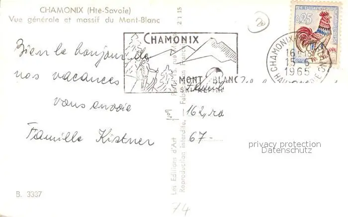 Chamonix Vue générale et Massif du Mont Blanc Alpes Francaises Chamonix postalisch gelaufen 1965 Erhaltung siehe scans [FriedD77] Frierer