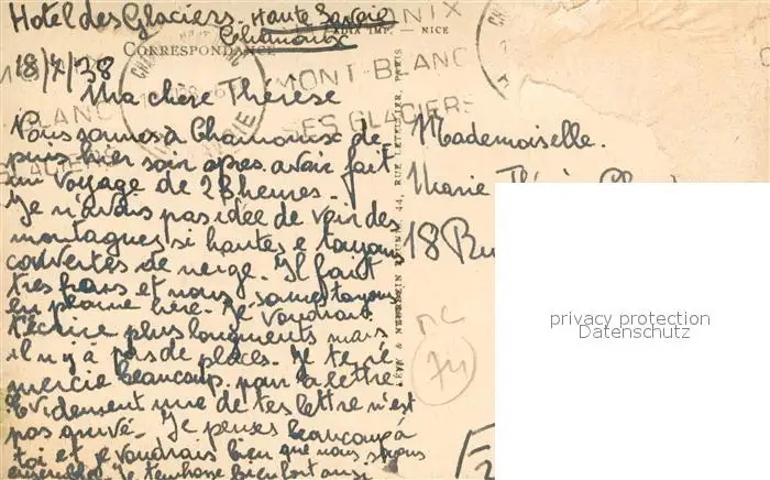 Chamonix Vue générale et le Mont Blanc Chamonix postalisch gelaufen 1938 Erhaltung siehe scans [FriedD77] Frierer