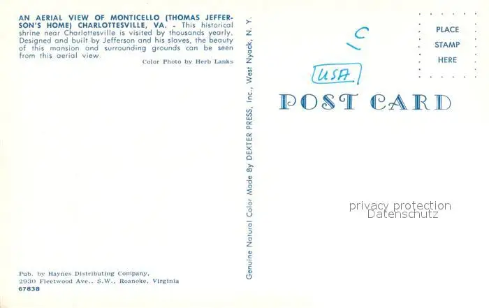 Charlottesville_Virginia Aerial view of Monticello postalisch nicht gelaufen nach 1965 Erhaltung siehe scans [WerneD78] WernPID7