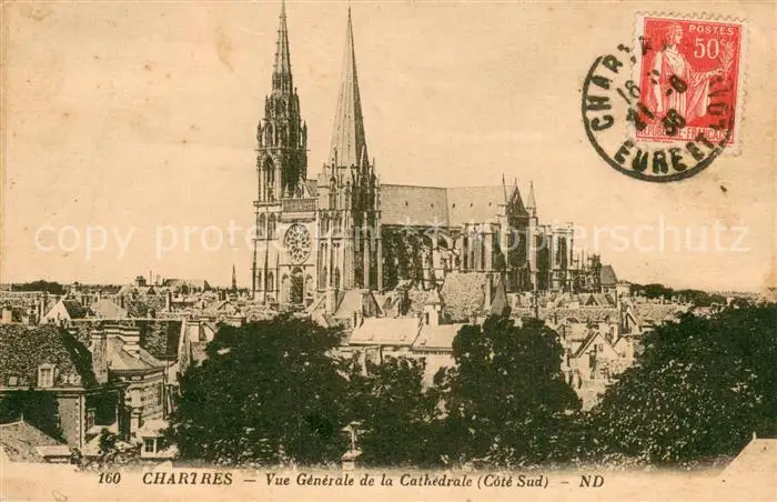 Chartres_28 Vue Generale de la Cathedrale postalisch gelaufen 1936 Erhaltung siehe scans [LiesaD40] LiesID40