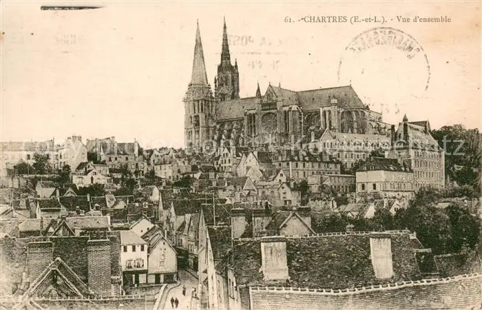 Chartres_28 Vue d ensemble et la Cathédrale postalisch gelaufen 1934 Erhaltung siehe scans [FriedD77] Frierer