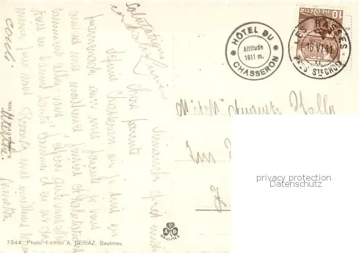 Chasseron_VD Signal du Chasseron postalisch gelaufen 1941 Erhaltung siehe scans [WerneD78] WernPID7