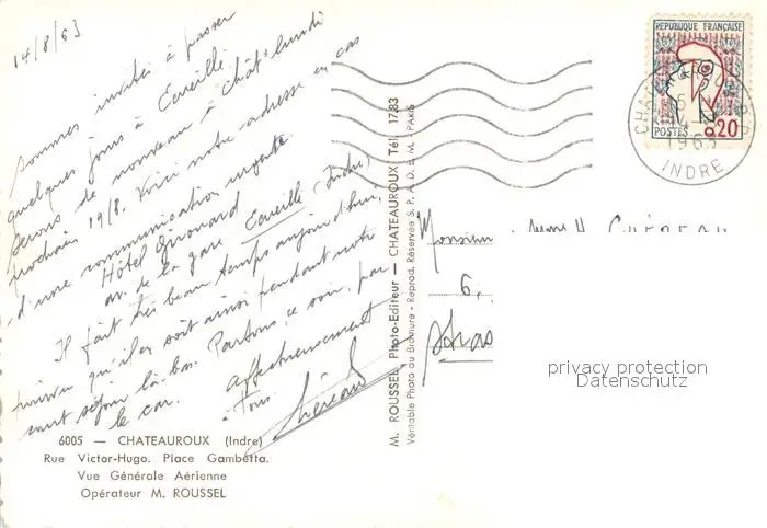 Chateauroux_Indre Rue Victor Hugo Place Gambetta vue aérienne Chateauroux Indre postalisch gelaufen 1963 Erhaltung siehe scans [FriedD77] Frierer