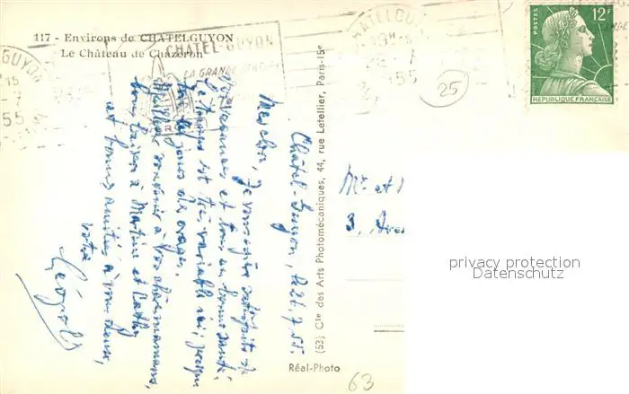 Chatelguyon Château de Chazeron Chatelguyon postalisch gelaufen 1955 Erhaltung siehe scans [FriedD77] Frierer