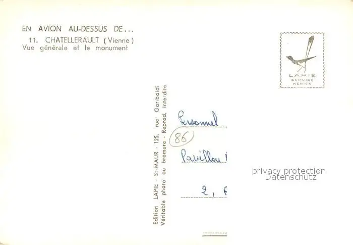 Chatellerault Monument vue aérienne Chatellerault postalisch nicht gelaufen 1921-1965 Erhaltung siehe scans [FriedD77] Frierer