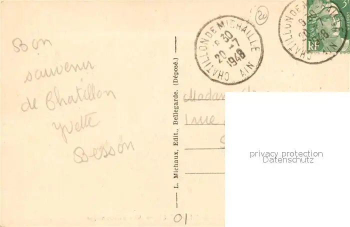 Chatillon-de-Michaille Vue panoramique postalisch gelaufen 1948 Erhaltung siehe scans [FriedD77] Frierer