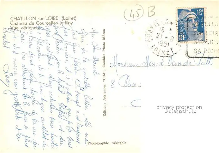 Chatillon-sur-Loire Chateau de Courcelles le Roy vue aérienne Chatillon-sur-Loire postalisch gelaufen 1951 Erhaltung siehe scans [FriedD77] Frierer