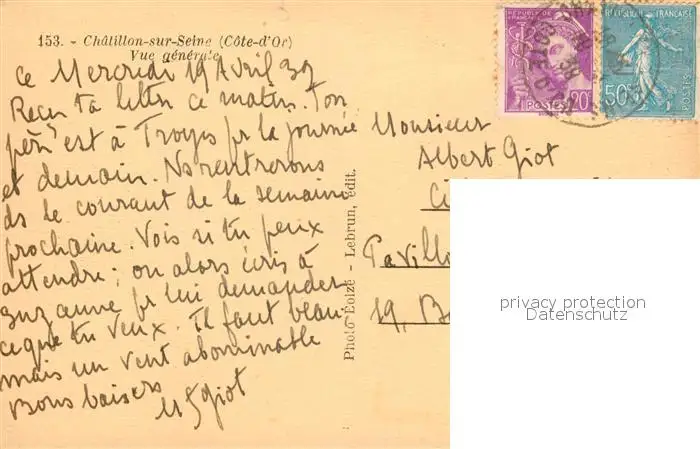 Chatillon-sur-Seine Panorama Chatillon-sur-Seine postalisch gelaufen 1937 Erhaltung siehe scans [KathaD81] Kathoren