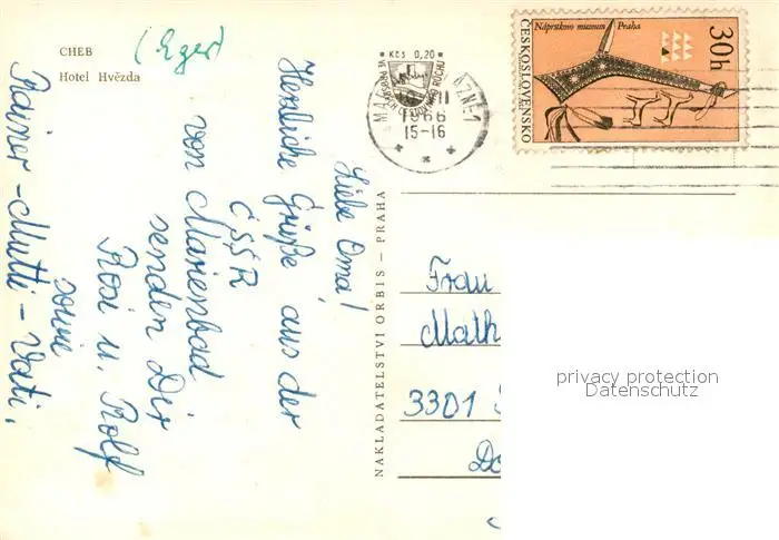 Cheb Hotel Hvezda Cheb postalisch gelaufen 1966 Erhaltung siehe scans [WerneD78] WernPID7