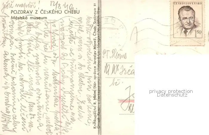 Cheb Mestske museum Cheb postalisch gelaufen 1949 Erhaltung siehe scans [WerneD78] WernPID7