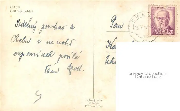 Cheb Panorama Cheb postalisch gelaufen 1947 Erhaltung siehe scans [KathaD81] Kathoren