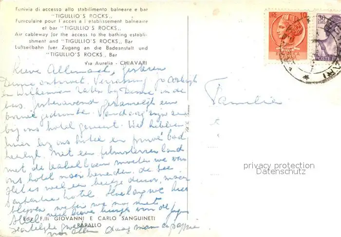Chiavari Luftseilbahn Chiavari postalisch gelaufen nach 1965 Erhaltung siehe scans [KathaD81] Kathoren