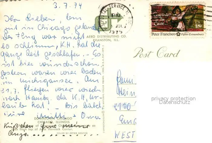 Chicago_Illinois Panorama of Downtown Chicago Loop seen from top of John Hancock Center postalisch gelaufen 1974 Erhaltung siehe scans [WerneD78] WernPID7