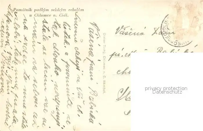 Chlumce Pamatnik padlym selskym rebelum Chlumce postalisch gelaufen 1921-1965 Erhaltung siehe scans [WerneD78] WernPID7
