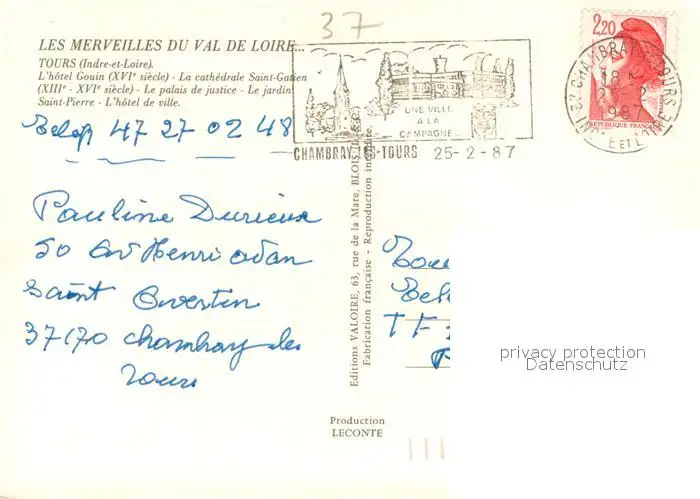 Chronik-AK Tours postalisch gelaufen nach 1965 Erhaltung siehe scans [IrynaD87] Iryn PID