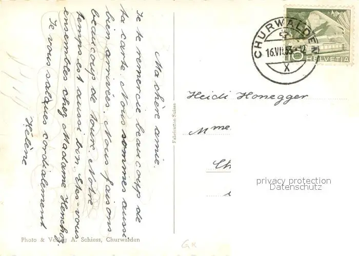 Churwalden Oberndorfmit Badanstalt Churwalden postalisch gelaufen 1953 Erhaltung siehe scans [WerneD78] WernPID7