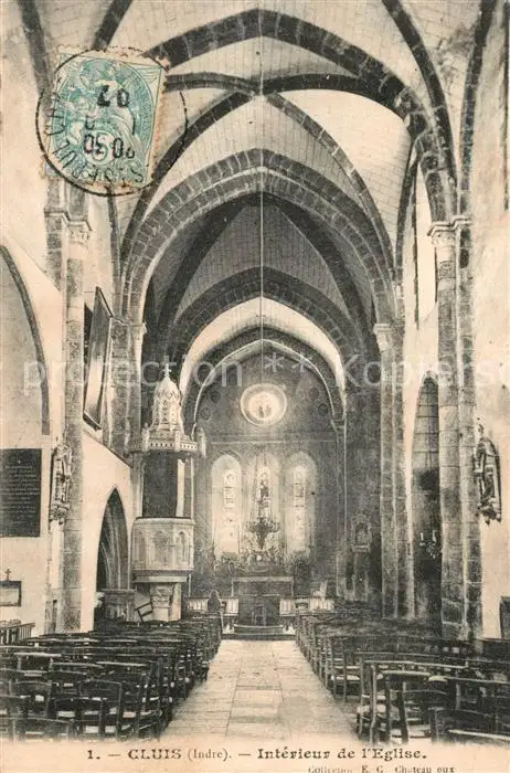 Cluis Intérieur de l'Eglise Cluis postalisch gelaufen 1907 Erhaltung siehe scans [FriedD77] Frierer