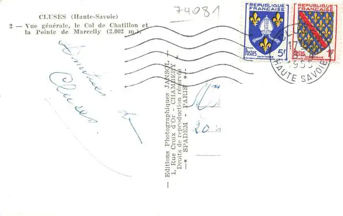 Cluses_74_Haute-Savoie Vue générale Col de Chatillon Pointe de Marcelly postalisch gelaufen 1955 Erhaltung siehe scans [FriedD77] Frierer