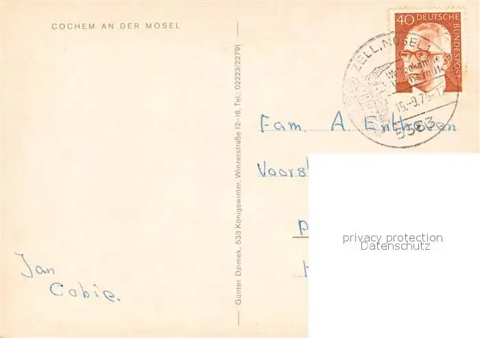 Cochem_Mosel Cochem Mosel postalisch gelaufen 1975 Erhaltung siehe scans [NatalD47] NataID47