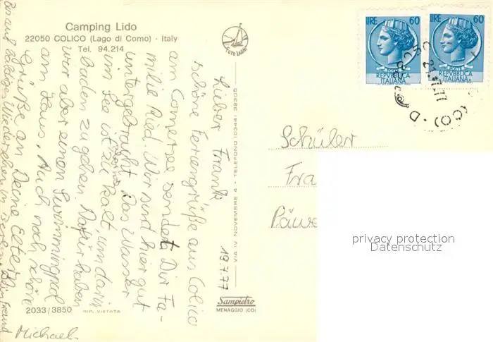 Colico_Como Camping Lido Colico Como postalisch gelaufen 1977 Erhaltung siehe scans [KathaD81] Kathoren