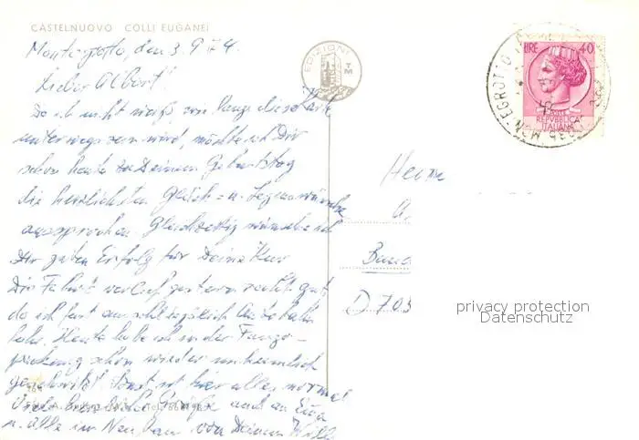 Colli_Euganei Castelnuovo Colli Euganei postalisch gelaufen 1974 Erhaltung siehe scans [WerneD78] WernPID7